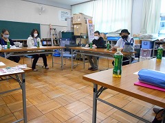 今日は雨の中でしたが、午前中に学校支援ボランティアの方が学校にみえて話し合いをされました。低学年の校区めぐりや、高学年の家庭科ミシンの実習など、担任だけでは手の足りないときに多くのボランティアの方に補助をいただき、いつも助けて頂いています。ありがとうございます。
