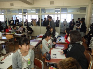 本校がこれまで取り組んできたESDについて、県内外より200名を超える教育関係者をお招きし、研究協議会を開催しました。開会行事では、児童会役員による学校紹介が行われ、地域の人口によって歌詞が変わってきた校歌に大きな関心が寄せられました。公開授業では、本校では通常に行われている、ESDの要素を取り入れた授業やESD活動報告会(11月9日に行われた総合学習発表会)を行いました。参会者からは、「子どもたちが、自分たちの考えを一生懸命に伝えようとする姿がすばらしい」という言葉をいただくことができました。参会者と本校職員による分散会(低・中・高学年)では、本校の取組報告について、多様な質問や意見をいただき、今後の本校のESD活動に大いに参考となり、教育活動の充実につなげていくための多くのヒントを得ることができました。