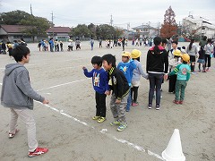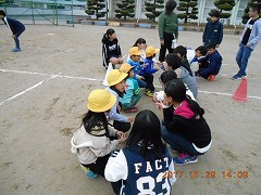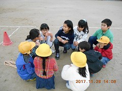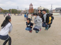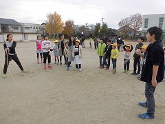来月の縄リンピックに向けて、6年生と1年生で練習会を行いました。各チームに分かれて自己紹介をした後は、いよいよ練習です。最初は、なかなか息が合わず1回も跳べなかったり、縄に入るタイミングが分からず戸惑ったりした様子のチームがありました。6年生は、手を繋いで一緒に跳んだり、大きな声で合図を送ったり、1年生をリードしながら工夫して練習することができました。明日以降も、本番に向けて協力して練習を進めてほしいと思います。