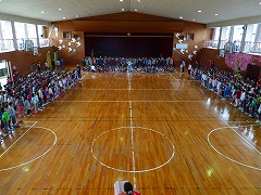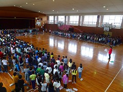 朝礼や児童集会で、児童会役員に続いて全校児童が、声に出して確認をしています。この宣言は、平成22年度前期児童会役員が作成しました。各学級や昇降口に掲示しています。
