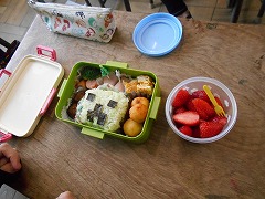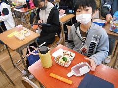 6年生の教室に出向くと、色とりどりの弁当箱を囲んで大変盛り上がっていました。聞くと多くの児童がすべて自分で作ったと話していました。(中にはほとんど電子レンジが「チン」と作ってくれたと話す子もいましたが・・・)最近は男子も料理ができる方が、女子にもてるのだそうです。共かせぎの夫婦が増えてくる中で、互いに相手にもたれかからず自立をしていることが結婚の条件とも聞きます。
