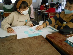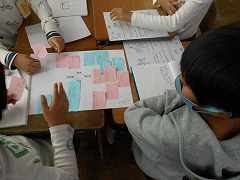 今日の授業は、前時に行った「クラスを明るくするために」の話し合いをふり返りながら、次の話し合いに向けて、「よりよい話し合いの準備をしよう」というのがねらいでした。それぞれの役割ごとに「よりよい話し合いの進め方表」に沿って反省をし、改善点とその解決方法をグループで話し合いました。参観する側としては、前時の話し合いの方を見てみたかったなという思いもありましたが、Xチャートに意見を集約しながら真剣に話し合いをしていました。班での話し合いは特に子ども同士の信頼関係ができていないとなかなか進まないことが多いのですが、司会の子を中心に意見をまとめようとみんな協力していました。4年生の学習目標は、出された意見に対する自分の考えとの共通点や相違点を意識しながら話し合うことです。今日の全体での話し合いも、出された意見に対する考えをお互いに出し合いながら話し合いが深まっていくとさらに良かったと思いました。しかし、限られた時間の中で司会・参加者・記録・提案者とさまざまな立場に対する意見交流が必要だったため、難しかったようです。