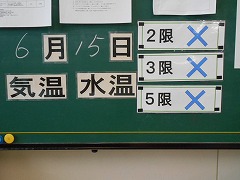 計画では、今日から水泳の授業を始める予定でしたが、東海地方も昨日梅雨入りし、今日は朝から雨で、半そででは肌寒く感じるような日となってしまいました。