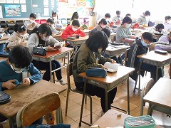 12月21日実施予定のマラソン大会に向けて、今日からマラソン集会が始まりました。ウオーミングアップ・クールダウンを含めて10:15~35までの20分間で、実走は5分間、運動場を自分のペースで走り、体を長距離になれさせていきます。わずか5分ですが、ほんの少し走っただけでも体がぽかぽかしてきました。もちろん耐寒訓練という意味もあり、寒さに負けない体づくりに取り組みます。
