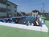 汚れた水に初めは戸惑っていましたが、一度水に入ると、そんなことを気にする様子もなく、一生懸命に壁や床を磨いていました。甚小のみんなのためにという責任感が、児童の清掃に取り組む姿勢に表れていたと思います。