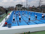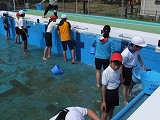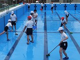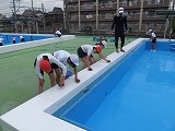 6月19日(月)のプール開きにむけて、6年生の児童がプール清掃を行いました。