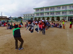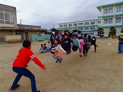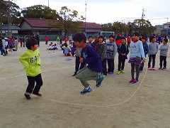 はじめの一人跳びは、学年によって種目が異なりますが、どの子も自分の学年の目標に向けて楽しそうに跳んでいました。その次は、8の字跳びと通り抜けを行い、最後には、ペア学年によるなかよし跳びを行いました。なかなか、うまく跳べないチームもありましたが、だんだん声が大きくなり盛り上がり、みんなうまく跳べるようになっていました。
