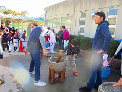 今年で第9回を迎えた親子餅つき大会。甚小おやじの会のみなさんによる大人気の行事として、定着しています。今年も多くの家族の方が参加され、天候にも恵まれ、大盛況となりました。
