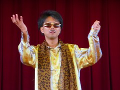 最近着ぐるみを着たキャラクターが登場していましたが、今年は今大人気のピコ太郎?が甚小体育館に現れ、楽しませてくれました。餅もたくさんの種類が用意され、ちょっと辛めの大人味の餅も新作として登場しました。餅だけでなく、プロの味付けによる大根料理が今年も出されて、餅と共に長い行列が出来ていました。