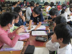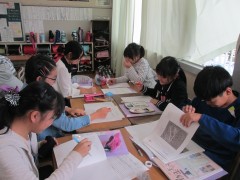 6年生は、いつものクラスを離れて、テーマごとに集まって学習をしました。ほかのグループはどんな発表を考えているのか、参考にできる工夫はないかと交流しながら学習をしました。いつもと違うメンバーが集まった教室で、新鮮な気持ちで学習に取り組む子どもたちの姿が見られた1時間でした。