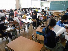 5年生が体積の学習をしていました。L字型の体積をいろいろ工夫しながら解く問題です。大きく3通りの方法があります。一度答えが出ても、違った解き方や考え方で解くことは間違え発見力につながる大切なことと思います。丁寧に計算などをする姿勢も大切ですが、それだけではミスをすることもあります。算数ではテストで早く終わったときに他の方法でも解いて確かめをして、100点満点を目指せる子を育てたいです。