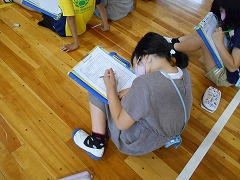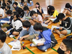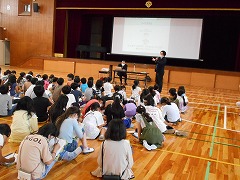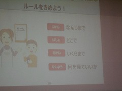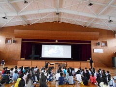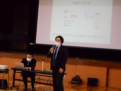 映像や図、クイズなどを交えながら、3・4年生にもわかりやすい口調で説明していただきました。スマホをやりすぎないために必ず家庭でルールを決めてほしいこと、スマホによるいじめを絶対にしないこと、いじめるつもりはなくてもスマホは文字でのやりとりになるので、話し言葉と違い送り手の真意が伝わらないこともあること、などを具体例を示しながらわかりやすく説明していただきました。