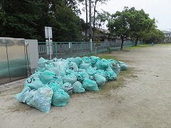 のびのびになっていたクリーンクリーン活動でしたが、多くの保護者、ボランティアの協力と全校児童のがんばりでなんとか実施することができました。大変暑い中でしたので活動時間は30分程でした。それでも数の力は大きかったです。ざっとごみ袋100袋分ぐらいの草が取れました。これで運動会もすっきりしたグラウンドで行えます。