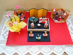 いつも用務員さんに準備していただける保健室前の季節の飾りつけも、今日からはひな祭りバージョンに替わりました。春は、もうそこまで来ています。