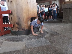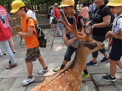 20日・21日の1泊2日で、京都・奈良地方に修学旅行へ出かけました。2日間ともこの梅雨の時期としては大変めぐまれて、金閣寺・班別分散行動・友禅染体験・清水寺での音羽の滝、東大寺の柱くぐり、法隆寺での夢殿見学など、無理かなと事前に覚悟をしていたことも、他の団体客も少なくすべて行えました。これも6年生の日頃の行いの良さのおけげです。とても中身の濃い2日でした。6年生の2日間の生活態度もマナーを守り、互いに助け合いながらとても気持ちのよく過ごせました。この経験を今後の歴史学習や行事にも生かしてほしいと思います。残り9か月最高学年として甚目寺小学校をしっかり引っ張っていってくれる確信を得ることができ、うれしく感じた2日間でした。
