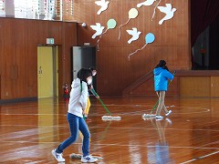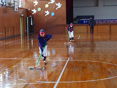 今日は来る卒業式に向けて、おやじの会の皆さんと、6年生の有志で体育館のワックスがけと、体育館横のトイレ掃除を行いました。おやじの会の横井会長から、今までお世話になりましたという感謝の気持ち、後輩達にこれからも気持ちよく使ってほしいという気持ちで取り組みましょうというお話がありました。参加した子どもたちは、おやじの会の皆さんと一緒になってワックスがけや掃除をがんばってくれました。その姿を見て、子どもだけでは想いがなかなか表せないことを、おやじの会の皆さんが力を借してくださったおかげで、伝えることができたように思いました。いつも楽しいイベントを企画してくださるおやじの会の皆さんですが、子どもが「こんなことしたいな」という思いに、力を貸してくれる企画をしてくださっていることに感謝いたします。参加してくださった皆さん、ありがとうございました。