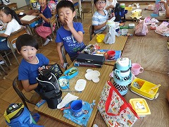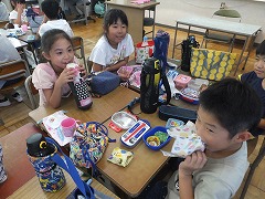 そんな中、今日は台風が心配されたため、給食が中止となり弁当の日でした。みんないつもと違った雰囲気の中での昼食でうれしそうでした。これが毎日だと作るのも大変ですが、みんなの笑顔を見ていると、作っていただいたお家の方の愛情がいっぱいつまったお弁当もたまにはよいのかなと感じた一日でした。エアコンの力を借りながら教室での学習も集中してできています。