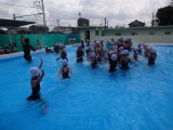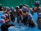 7月10日(火)、6年生と一緒にプールで水かけバシャバシャをしたりじゃんけんぽんをしたりしました。初めて深いプールに入り、6年生のお兄さんやお姉さんにおぶってもらい、楽しそうでした。
