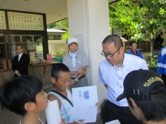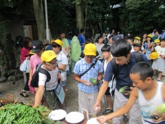 先日、萱津神社に取材に訪れた6年生のグループが、萱津神社での「香の物祭り」の見学と取材を行いました。毎年8月21日行われる香の物祭り。漬物に関わる会社の方や、地域の方が多数参加されます。子どもたちは、祭りに参加している方に、どこからお見えになったのか、なぜ参加しているのかなど詳しく取材していました。実際に野菜の漬け込みも体験することができました。多くの方の話を伺うことができ、有意義な取材活動となったようです。