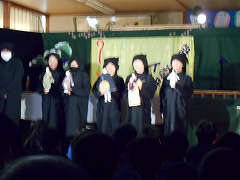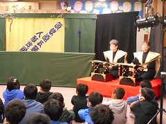 語りはもちろん文語調ですし、場面入れ替えも1回でしたので、テレビやゲームで、はやい展開に慣れている今の子ども達にはどうなのかなという思いで見ていましたが、終わってみると、「楽しかった。」「おもしろかった。」という感想がたくさん聞かれました。やはり本物のすごさ、生の魅力だと感じます。長年引き継がれてきた伝統の重みを感じました。甚目寺の良き伝統をまた一つ知ることのできた日でした。