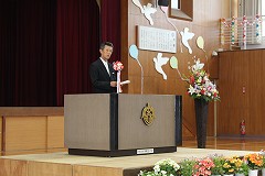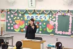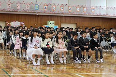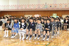 4月6日(金)入学式が行われました。本年度は83名の新1年生を迎えました。6年生に手を引かれて緊張した表情で入場しましたが、次第に落ち着き、校長先生、教育委員会、来賓の方の話をしっかり聞くことができました。校歌斉唱の前に児童会長から「早く校歌を覚えてください」という話を聞き、これから始まる学校生活への期待をふくらませていました。