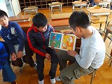 今日は、3日間続いた読み聞かせの最終日。3年3組と5年3組の交流が行われました。人権週間にふさわしい内容の本を選んでの読み聞かせ。朝の読書タイムの時間を使い、3-3、5-3、プレ5、学習室の4つの教室を使い行われました。5年生が3年生に向けて読み聞かせを行うことで、先輩のすばらしい姿が受け継がれます。甚小のよさの秘訣が、こんな一場面に現れていました。