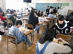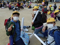 一斉下校。小学校では珍しいのですが、甚目寺小学校の子は、甚中・甚南中の2つの中学校に分かれて進学します。最後の別れになる子もいました。ランドセル姿も見納めです。