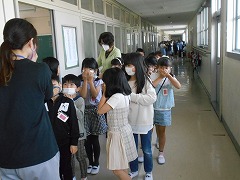 自分達の命を守るという最も大切なことに関わる訓練なので、自分一人ぐらいは・・・という思いを全員が捨て、集団の中に自分を自覚して、周りの空気を感じながら、緊張すべき時には、一人の例外もなく全員がビシッとできる学校にしたいと願っています。今の甚目寺小学校の子たちならできると信じています。