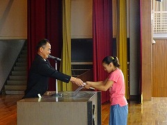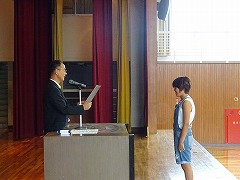 その後、長い夏休みを迎えるにあたって3つのことを話しました。1つ目は、1番大切な自分の命を大切にすること。そのために、交通事故・水の事故から、自分の命は自分で守る努力をしてほしいこと。2つ目は、夏休み中ぐらいは家族の一員としての役割を果たしてほしいこと、そのために毎日できる手伝いを自分で決めて42日間続けてほしいこと。3つ目は自分の得意なこと、好きなことを伸ばしてほしいこと。まだ見つからな子は、いろいろなことに挑戦して、ぜひ夢中になれることを見つけてほしいことを話しました。