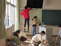 午後、卒業プロジェクト ~奉仕活動~ が行われました。事前に担当者がどんな活動をするとよいかの話し合いを重ね、活動場所や活動内容を指示して始まりました。日頃の清掃ではできないところを中心に、大きな机を移動させてワックスがけをしたり、高い棚の上のほこりをとったりと最上級生ならではの活躍がたくさんありました。6年生のみなさんは、どんなことを思いながら取り組んでくれたのでしょうか。校内が一段ときれいになり、在校生みんなで感謝したいです。6年生のみなさん、ありがとうございました。