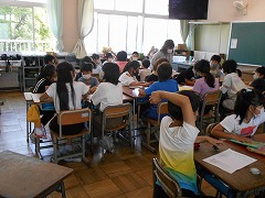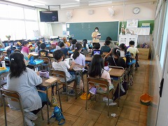 毎年、通学団集会は学期末に行っていました。以前は、夏休み中のプール出校や夏休みの補充学習をしていたため、うち合わせの必要があり、夏休み前に行う意味がありました。しかし、最近はプール出校もなくなり、夏の教室も人数を絞って、保護者の方の責任で登下校をお願いするようになり、長期休み前の通学団集会の意義が薄れてきました。