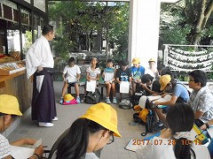 萱津神社チームは、自転車で現地取材へ向かいました。香の物祭りで有名であるということはどの子も知っていたようですが、住職さんから詳しく説明を聞いたり、質問に答えていただいたりして、学びを深めることができました。香の物殿の中も見学させていただき、子ども達は興味津々でした。このチームは、8月21日(月)に行われる香の物祭りにも参加させていただく予定です。