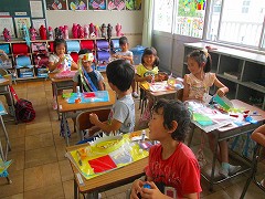 「ピエロに変身するよ!」「ケーキになるんだ!」と、子どもたちは楽しい発想をしながら作品作りに取り組んでいます。出来上がりが楽しみですね。