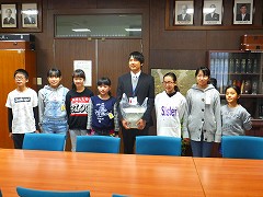 今日はあま市社会福祉協議会の方がいらっしゃり、児童会が中心となって赤い羽根共同募金で集めたお金を受け取っていただきました。今回の募金額は12609円でした。それと昨年5年生がてづくり朝市で得た収益金15000円と合わせて、27609円を募金いたしました。