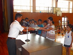 9月12日(月)朝礼時に、2学期学級委員認証式が行われました。2年生から6年生までの各クラスの男女学級委員が壇上で認証されました。