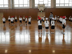 3・4年になると、マットの準備など他のことを担任がしながらでも、自分達で号令をかけ準備体操をしていました。6年生は、今年度から教科担任制で、専門の先生が行うようになったことも大きいと思いますが、自分達で運動場にそろったら、きめられたサーキットトレーニングを自主的に、それぞれのペースで行っていました。授業のパターンが出来上がっています。先生の説明や指示を聞く姿勢も立派です。自主性や協力等の成長度合いがとてもよくわかりました。