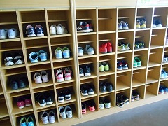 甚目寺小学校のげた箱のくつをみると、いつもどのクラスもきちんとくつが収められています。また、職員室の前にはクラスへの配布物を仮置きするボックスがありますが、そこも朝になるとどのクラスもきれいに空になります。見ているとクラスで毎朝、げた箱の整とん状況をチェックする係や、朝と帰りに配布ボックスの中身を取りに来る係、職員室前の出欠黒板を記入する係など、クラスで係分担して、いつもきちんと学校生活が回っていくように工夫されています。係活動を毎日こつこつ続けることで、係の子にとっては、自分がクラスで役立っていることを実感でき、クラスへの所属意識も高まると思います。