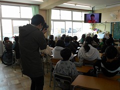 終了後、児童の代表がオンラインハッピートーク朝礼についての感想を取材されていました。中日新聞の地方版に近日中に掲載されるようです。楽しみにしていてください。