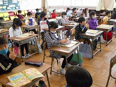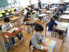 ・ブックママ(図書ボランティア)さんの読み聞かせを行っています。左のメニューよりご覧ください。