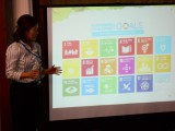 前半は、地球に優しい商品や文房具などについている環境マークについてくわしく説明をしていただきました。