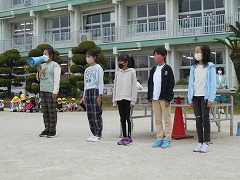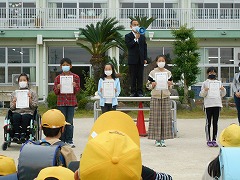 一斉下校時に、後期の児童会役員の認証を行いました。役員に選ばれた子達はみんなよい顔をしていました。選んだ人たちもしっかり協力をしてリーダーを中心に、みんなで甚目寺小学校を盛り上げていってほしいと思います。