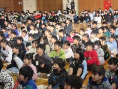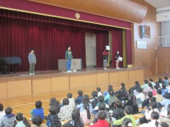 朝礼後には、生活委員会から「生活ビンゴ」のお知らせ、体育科より来週から始まる「なわとび集会」についてのお話があり、なわとびの技の紹介では「すごっ!」と歓声が上がりました。