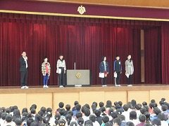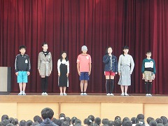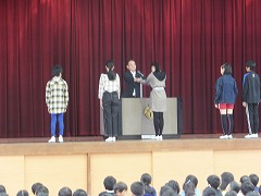 その後、前期児童会役員から後期児童会役員への引きつぎ式が行われました。いろいろ苦労もあったと思いますが、どの子も役員を経験してよかったとの思いをもてたことをうれしく感じました。全校児童は自分たちが選んだ責任を自覚しながら、みんなが協力をして、役員の下で一つにまとまれる児童会になることを願っています。