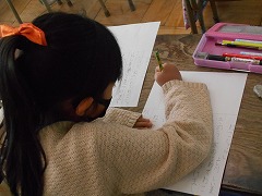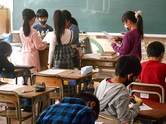 今、国語科では、「書くこと」の学習をしている学年が多いです。1年生は、身近なものの紹介、2年生は秋を感じさせることの紹介などです。小学校の低学年から順に35人学級となり、1クラスの人数が減ってはきましたが、書くことの指導をしていると、まだまだクラスの人数を少なくしてほしいと思います。改行の仕方や句読点のうち方など、全体での指導はしますが、どうしても個別の指導が必要なため、担任の先生はとても大変そうです。