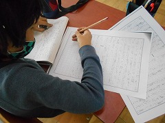 校内を回って授業を観察していると、各学年の教科書の配列はだいたいそろっていることに気づきます。あるクラスで計算の領域を学習している時期は、だいたいどの学年も計算の学習をやっています。