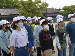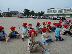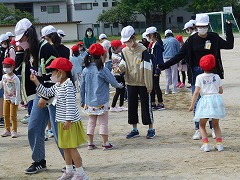 心配をしていた雨に降られることもなく、1時間目に運動場で1年生を迎える会を行いました。6年生に連れられて(いつもなら手をつなぐところですが、感染対策のため赤白帽子を介して)1年生がみんなの拍手で迎えられました。児童会長の歓迎の言葉の後、学校紹介として、校歌の合唱と甚目寺小学校に関するクイズをしました。クイズと解説の中で、甚目寺小学校の先生の数の多さや今年150周年を迎えることに1年生も驚いていました。