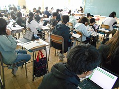 各クラスでタブレットを使い始めて、7か月ぐらいが過ぎようとしています。この間、とにかく“習うより慣れろ”で随分とどのクラスでも活用されるようになりました。今日も多くのクラスで使っていました。いよいよこれからは、ただ使うだけでなく、効果的な使い方を模索していく段階になってきたと思います。