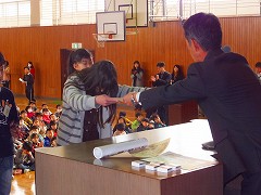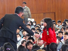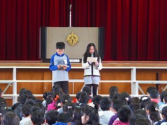 朝会の後は、6年生を送る会の練習を、1年生から5年生までで行いました。5年生が中心となってがんばっている姿を見ることができ、大変頼もしく感じました。最近は、各学年で6年生を送る会に向けて秘密の特訓が行われているようです。とても楽しみな6年生を送る会。今までお世話になった6年生に、しっかりと気持ちが届けられるとよいですね。