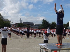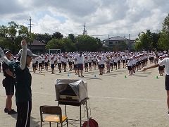 今日も大変暑い中でしたが、グラウンドで初めて全校練習を行いました。最初にしてはしっかり行えたと思います。まだまだ動きの確認や開閉開式の流れの確認だけでしたが、みんな真剣な態度で精一杯行えたことが良かったと思います。