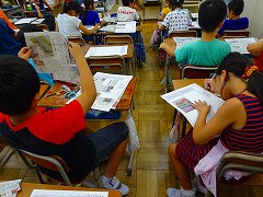 6月24日(金)中日新聞から先生をお招きして、「新聞」の出前授業を行っていただきました。中日新聞の題字の背景の絵がご当地の物がえがかれている秘密、新聞の作られ方、家に届くまでの作業、新聞の読み方についてのワンポイントアドバイスを教えていただきました。その後、「世界に一つだけのオリジナル新聞作り」に一生懸命取り組み、新聞にとても興味をもつことができました。